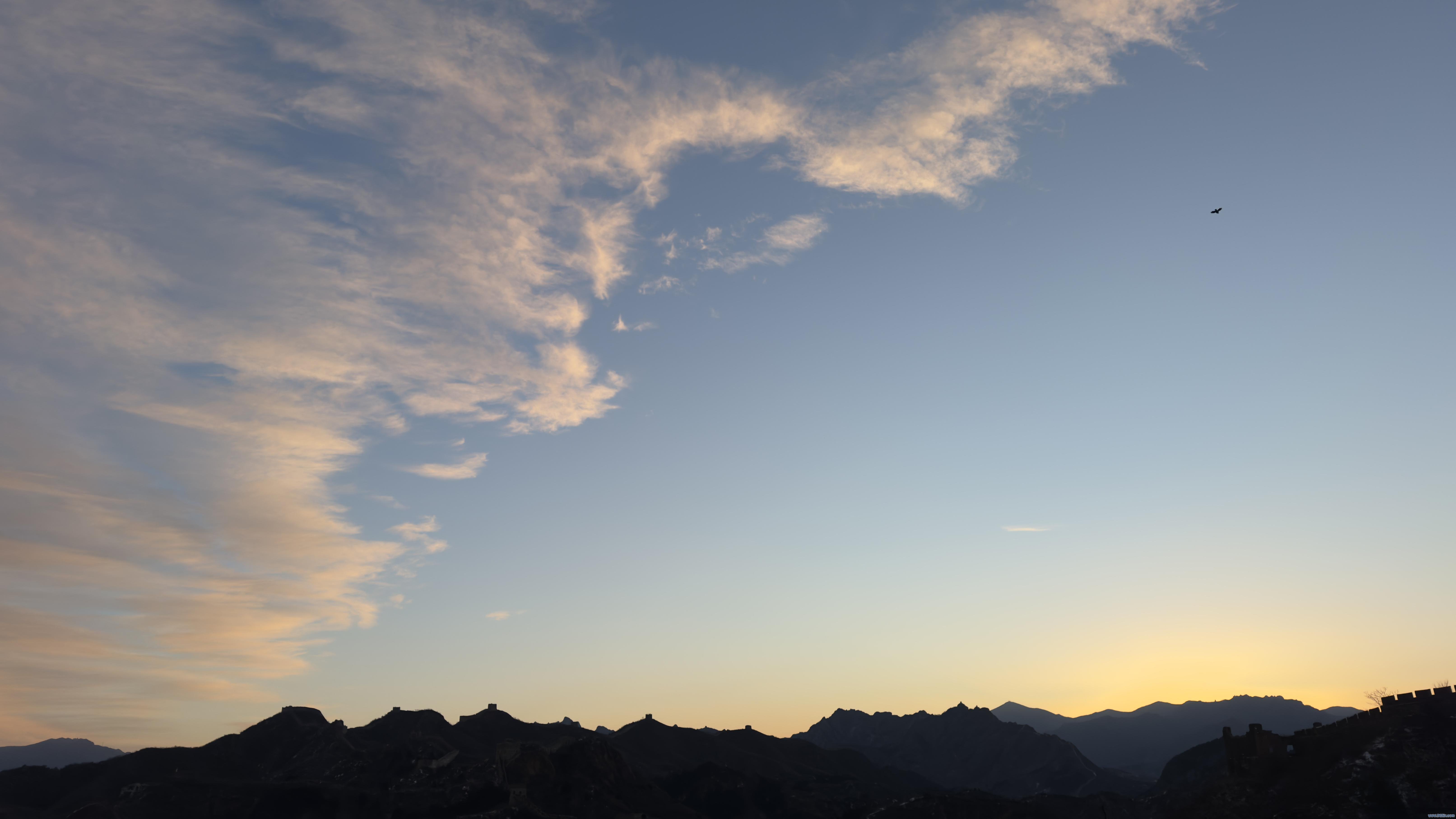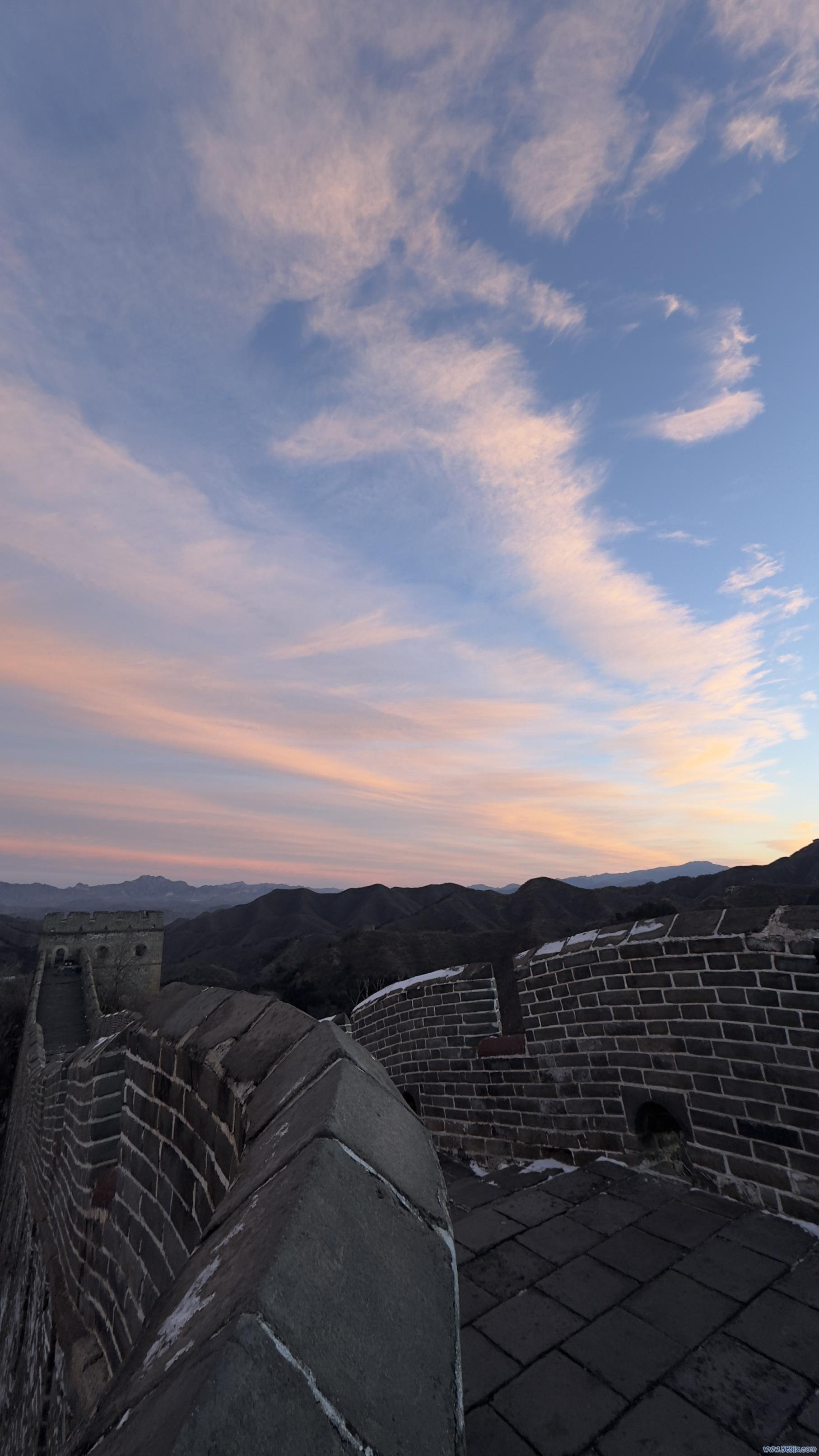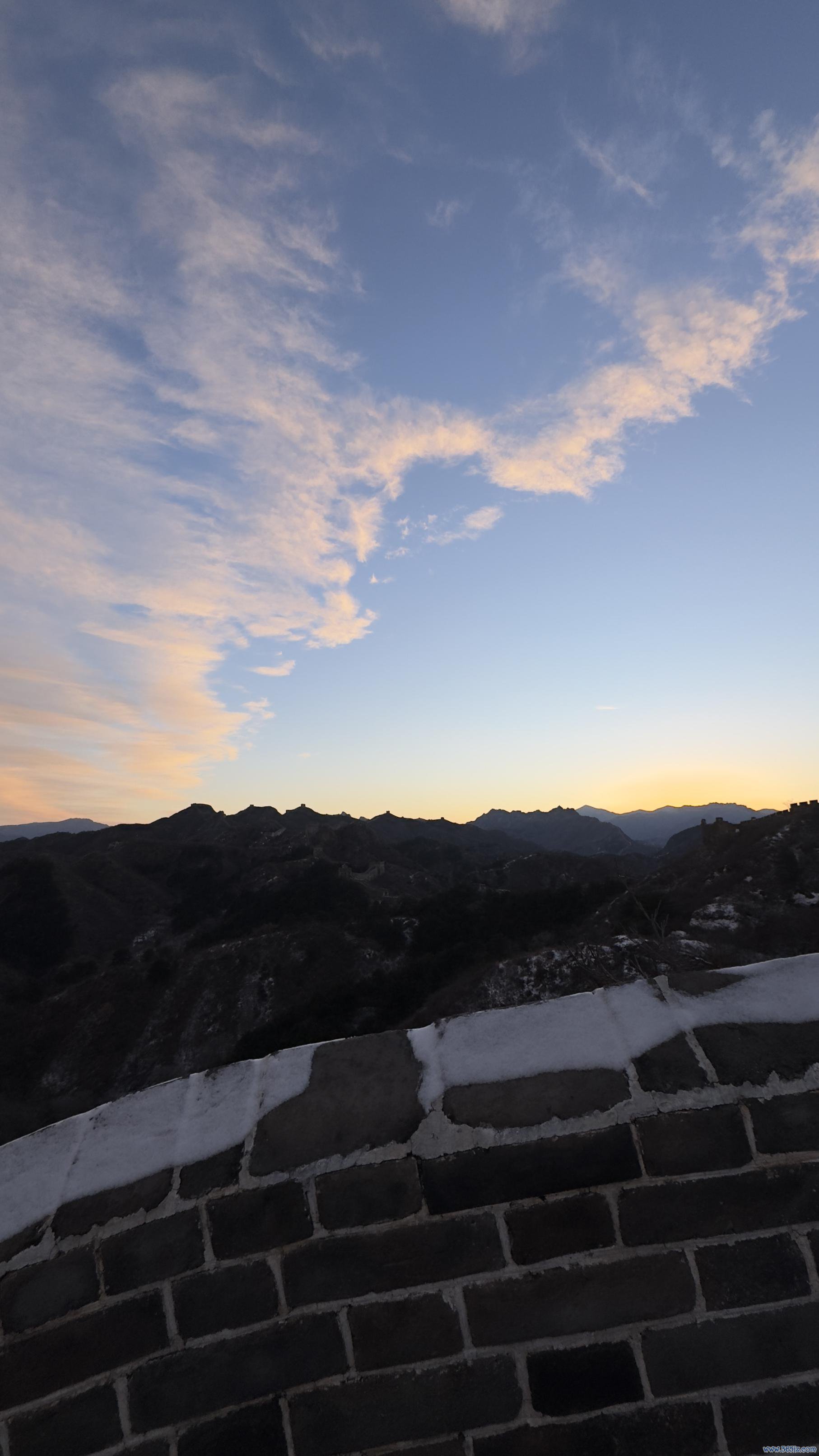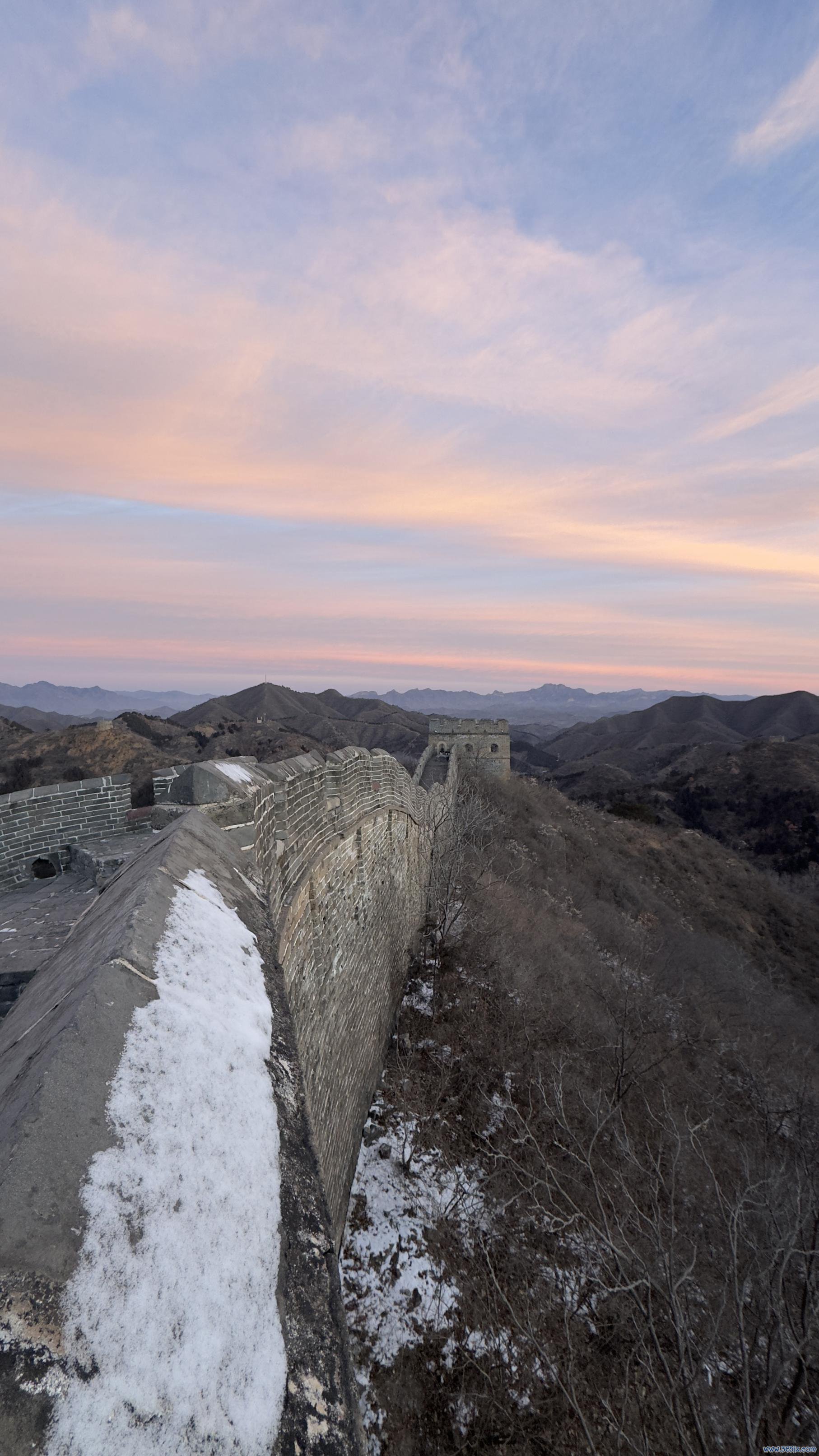12月24日,雪后早晨,河北省滦平县的金山岳长城,出现美丽瞩方向早霞高兴。